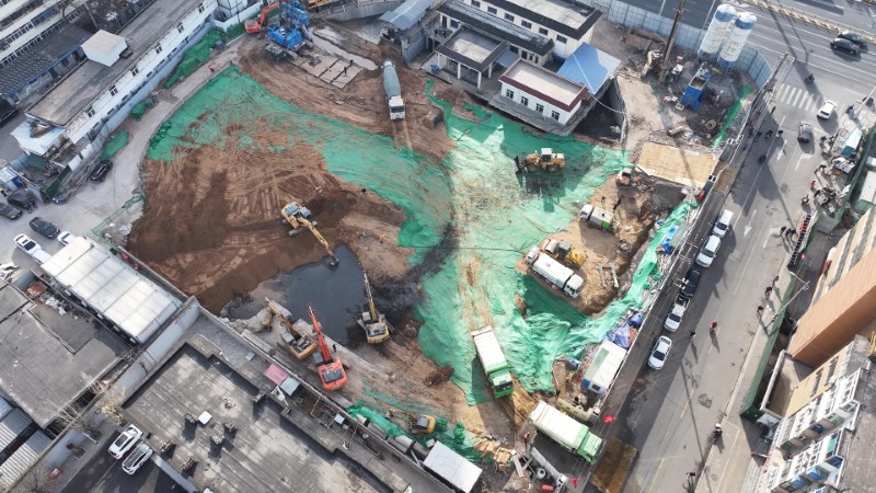 作為集團(tuán)公司首次應(yīng)用的先進(jìn)工藝,TRD工法成為該工程圍護(hù)結(jié)構(gòu)施工的最大亮點(diǎn)。該工法由主機(jī)帶動(dòng)插入地基中的鏈鋸式切割箱橫向移動(dòng)、切割及灌注水泥漿,在槽內(nèi)進(jìn)行混合、攪拌、固結(jié)原來(lái)位置上的巖土,形成等厚水泥土地下連續(xù)墻。這種施工方式在勝利街緩洪池改造項(xiàng)目展現(xiàn)出獨(dú)特優(yōu)勢(shì):整機(jī)高度僅10.1米,適配高壓線下方等高度受限場(chǎng)景;低重心設(shè)計(jì)賦予設(shè)備超強(qiáng)穩(wěn)定性,為施工安全提供了堅(jiān)實(shí)保障;其高精度控制系統(tǒng)確保了墻體在垂直與水平方向上的施工質(zhì)量。同時(shí),該工法對(duì)硬土、砂卵石等復(fù)雜地層適應(yīng)性強(qiáng),所形成的等厚連續(xù)墻止水性能優(yōu)異、品質(zhì)均勻,并可實(shí)現(xiàn)斜墻施工,兼具了良好的環(huán)保性與經(jīng)濟(jì)性。此次TRD工法的成功應(yīng)用,不僅為項(xiàng)目高質(zhì)量建設(shè)保駕護(hù)航,更填補(bǔ)了集團(tuán)公司在該技術(shù)領(lǐng)域的空白,積累了寶貴施工經(jīng)驗(yàn)。